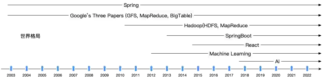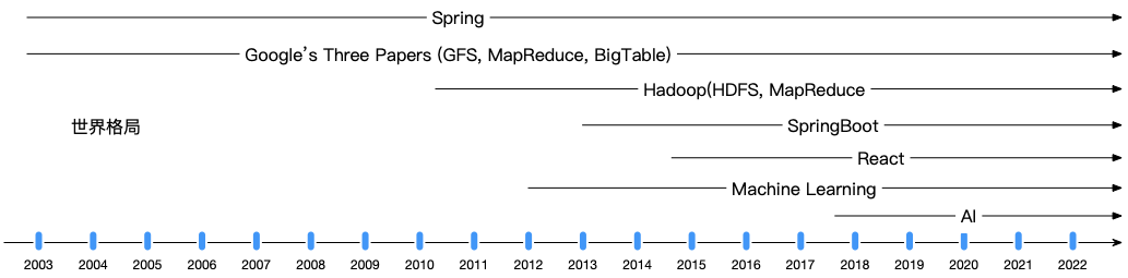 2003 年是个神奇的年份,淘宝网在这一年诞生,Rod Johnson 正在编写 Spring 的初版,而 Google 则在这一年发表了奠定大数据基础的三大论文的第一篇《Google File System》,随后又在 2004 年发表了 MapReduce,2006 年发表了 BigTable。有了这三篇划时代的论文,在当时的搜索行业老二雅虎的支持下,Hadoop 迅速发展了起来。