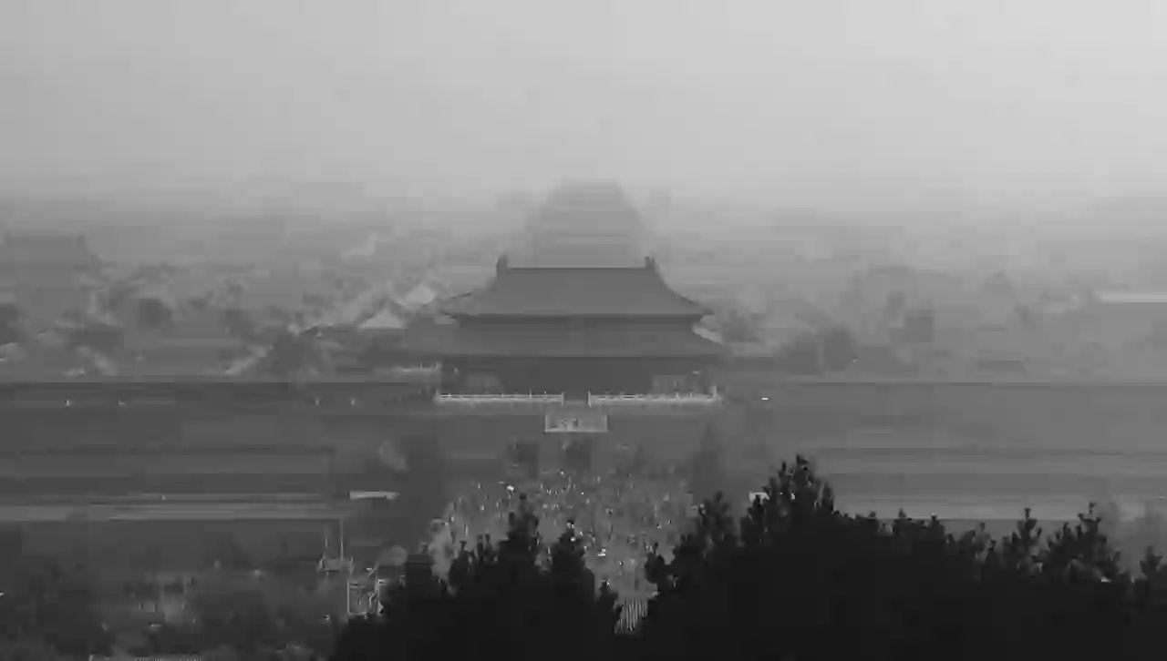 ►10月7日,中度霾污染下的故宫。摄影:刘聪