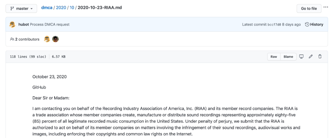 图源:https://github.com/github/dmca/blob/master/2020/10/2020-10-23-RIAA.md