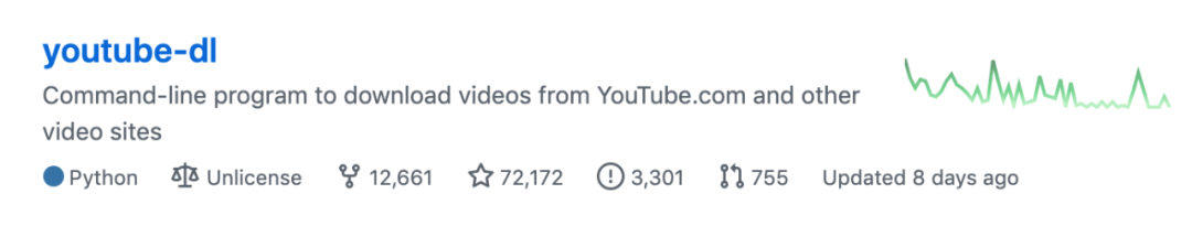 开源项目 youtube-dl 是一个使用 Python 编写的脚本,可以下载热门视频网站的音视频,并转换视频格式和清晰度。它是 GitHub 上的热门项目,获得 7.2 万多星。