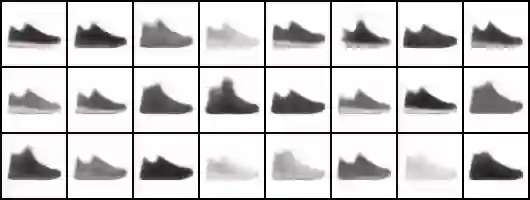 潜在因素的探索,每一行使用相同的目标运动鞋改变一个因素,每列是修改量的重建潜在向量,先前是标准正态分布。