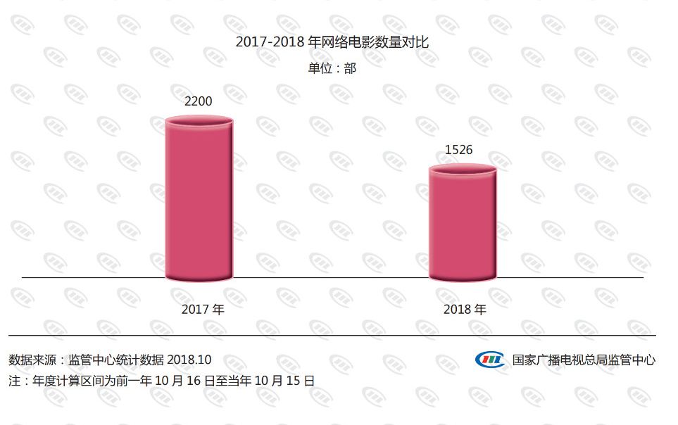 图13:国家广播电视总局监管中心:2017~2018年网络电影数量对比
