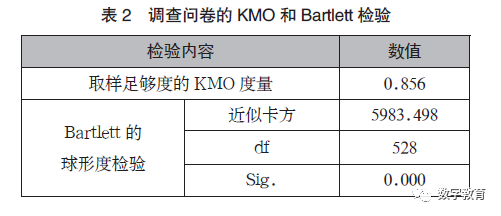 由表2 可知, 本研究的KMO=0.856, 同时
