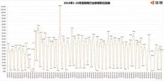 不过,今年互联网企业对人才的招聘需求确实呈现放缓的趋势,猎聘大数据“2018年1-10月互联网新增职位指数”能体现出来: