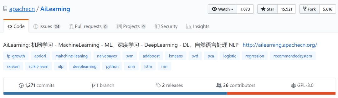 Github:github.com/apachecn/AiLearning