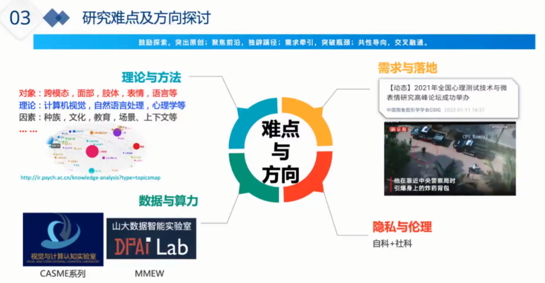 在报告的开始,贲晛烨教授首先介绍了他们团队在微表情分析领域的项目经验、数据库构建、前沿分析方法以及微表情的实际应用和落地情况。