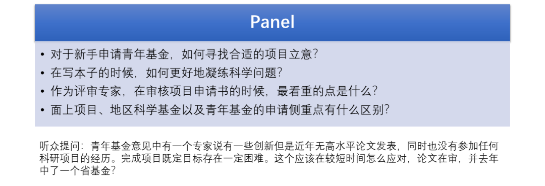 然后在分享国自然申请经验的部分,贲教授首先提出要讲好自己的故事、并且要有一个新颖和合适的选题。