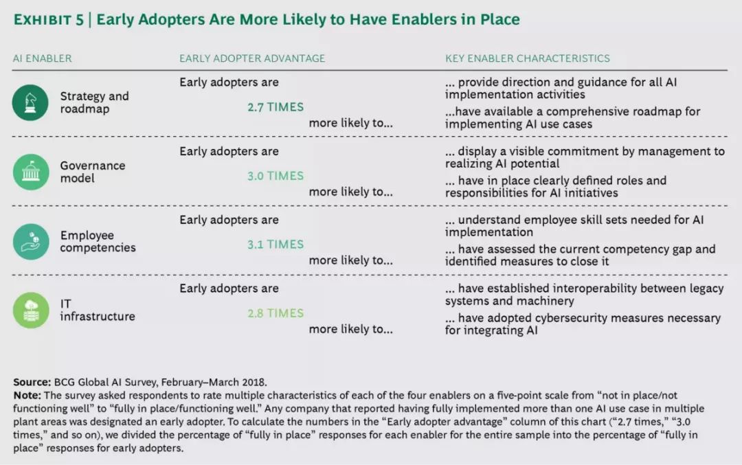 在让 AI 使能器充分发挥方面,早期采用者比滞后的公司所取得的进展要大得多。(参见图 5)