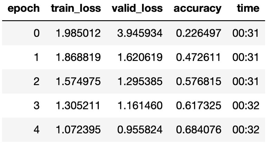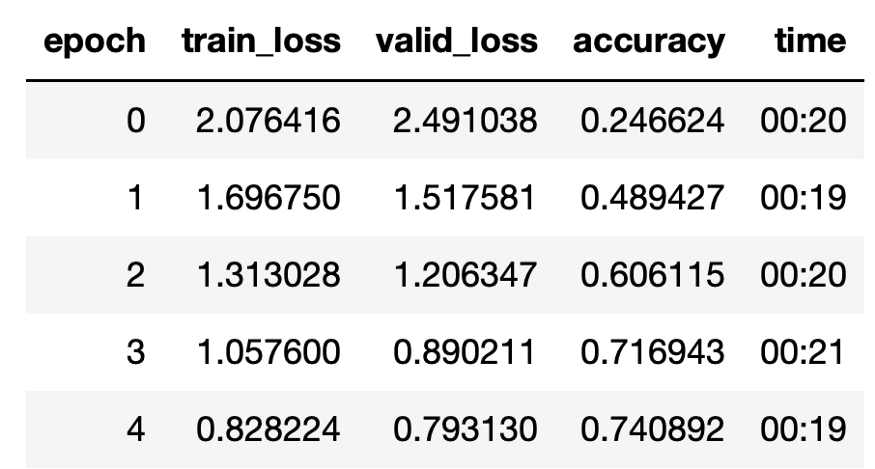 我们从训练VGG16 5个epoch开始(最终的准确性并不重要):
