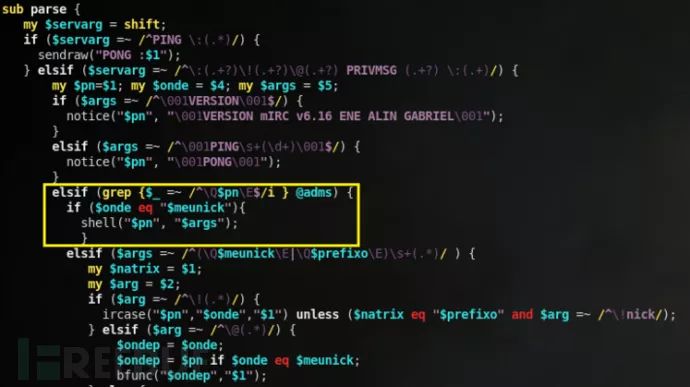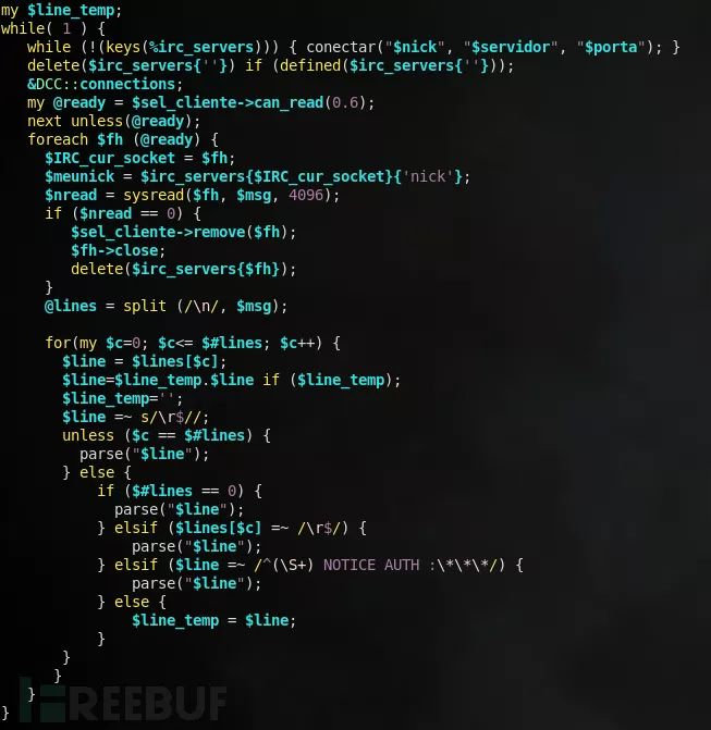 它主要负责持续监听IRC服务器发送过来的命令,parse函数用来判断命令内容:
