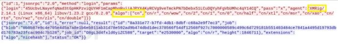 客户端会向服务器发送一些json数据,而且这里还包含了XMrig参数以及cn参数(CryptoNight)。