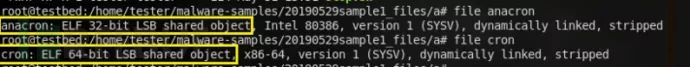 i686架构针对的是32位环境,x86_64架构针对的是64位环境。如果cron是64位代码,那么anacron就是32位的了。运行之后我们也证实了这一点:
