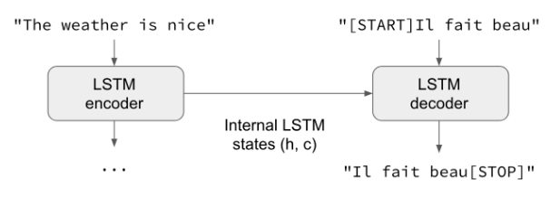 "the cat sat on the mat" -> [Seq2Seq model] -> "le chat etait assis sur le tapis"