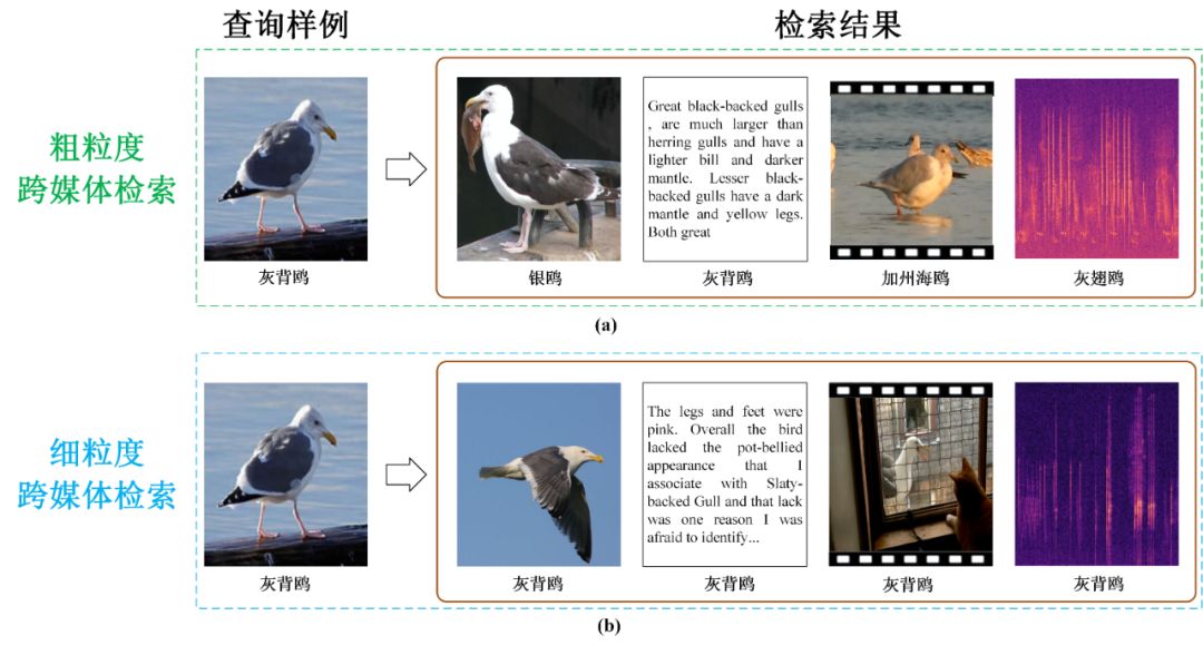图 1:粗粒度跨媒体检索与细粒度跨媒体检索的区别