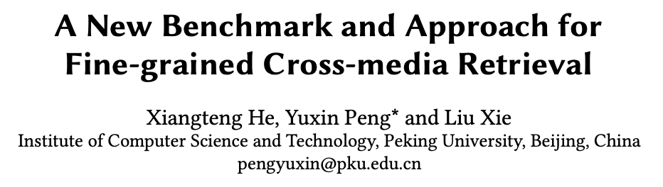 北京大学彭宇新教授团队建立了第一个包含 4 种媒体类型(图像、文本、视频和音频)的细粒度跨媒体检索公开数据集和评测基准 PKU FG-XMedia,并且提出了一种能够同时学习 4 种媒体统一表征的深度网络模型 FGCrossNet。该论文已经被 CCF A 类国际会议 ACM MM 2019 大会接收。