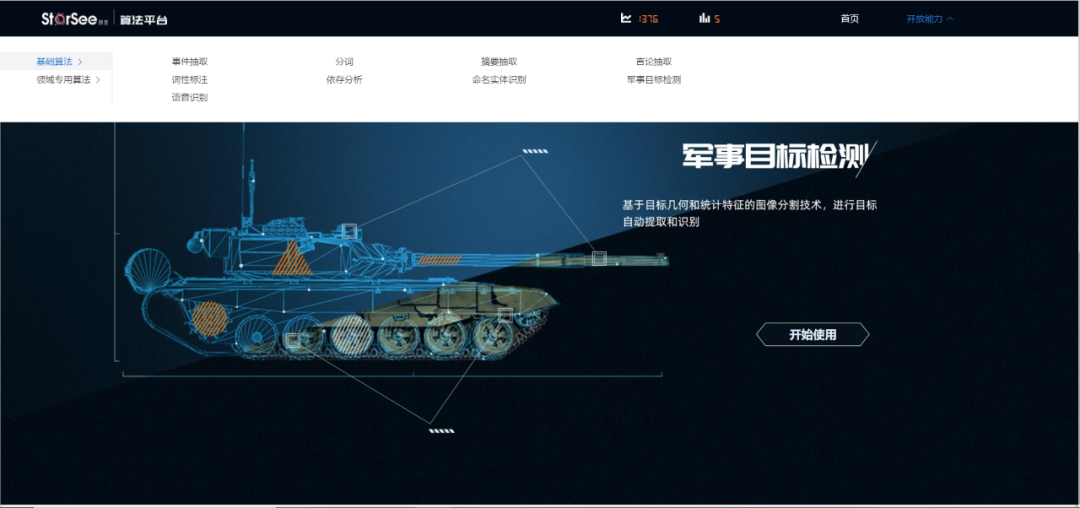 来自南京的智慧防务 AI 公司摄星智能开放了他们自主创新发布的首个国产军事算法平台——「星智」。 该平台拥有分词、摘要抽取、词性标注、依存分析、命名实体识别、语音识别等多项功能,还能检测视频真伪、进行军事目标威胁评估等。