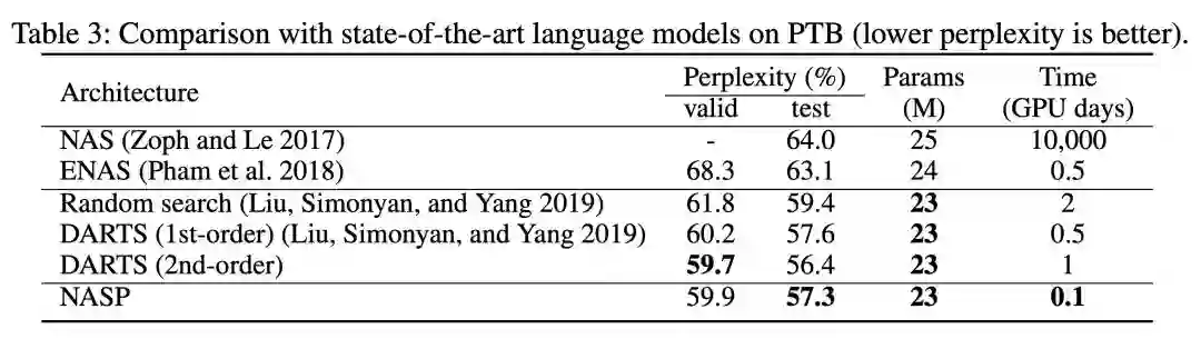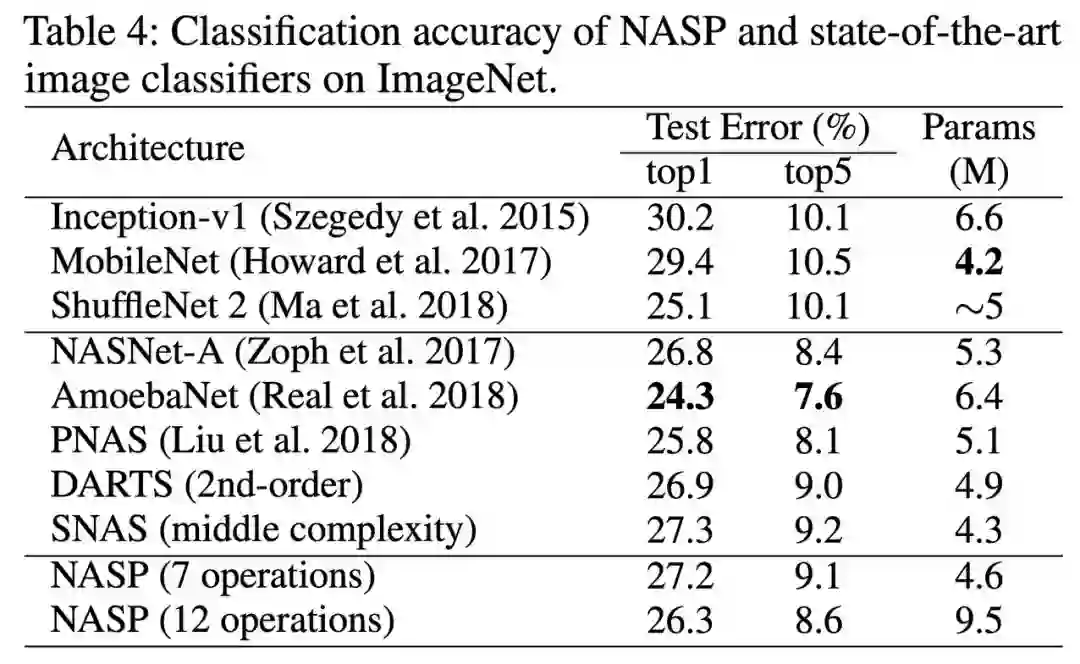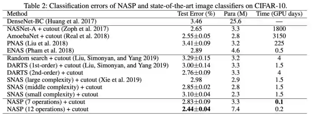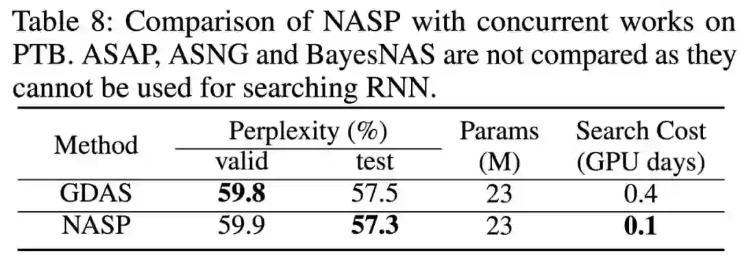 最后,在设计 CNN 和 RNN 架构时,使用各种基准数据集进行了实验。与最先进的方法相比,提出的 NASP 不仅速度快(比 DARTS 快 10 倍以上),而且可以发现更好的模型结构。实验结果表明,NASP 在测试精度和计算效率上均能获得更好的性能。