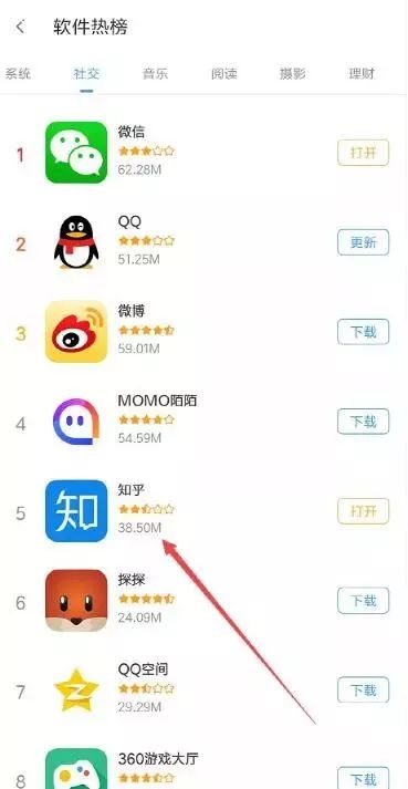 先看下“知乎”在软件排行榜,“社交软件”里面的排名,综合排名第五,有接近1500多万人使用,这还不包括百度搜索来的流量。