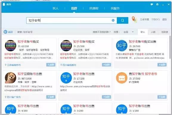 一种是自己直接去买知乎老号,渠道是QQ群等。