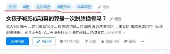 我们先看红线所标记的,这些是话题,每个知乎问题都会有归类的话题,好比说这个问题所归类的话题是:生活,减肥,运动减肥,减肥方法,科学减肥。