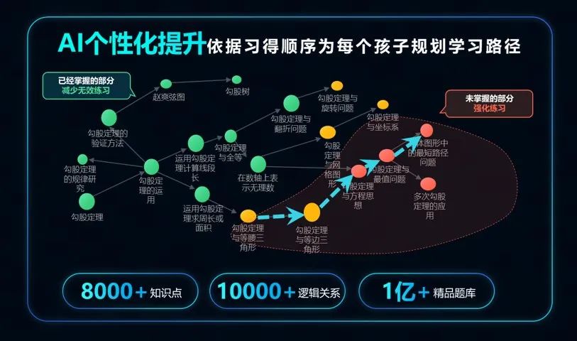 他发现,用科大讯飞的知识图谱,能够精准分析超超对于初一的各门功课的掌握程度,对他已经掌握的部分减少无效练习,对他还没掌握的部分进行强化练习。