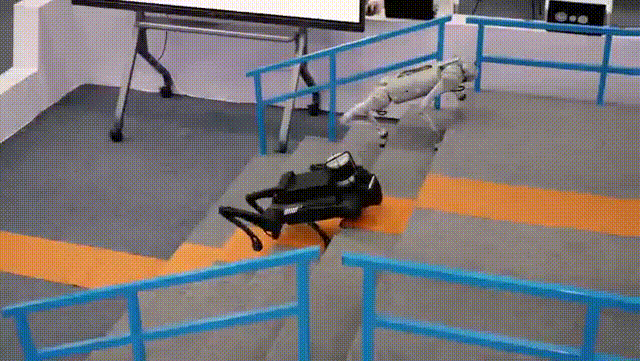 而因为有了机器人超脑,机器狗拥有了更实时的地形自适应能力、更快速的全局定位搜索能力、更精确的地图构建能力和更高性能的AI运动控制。