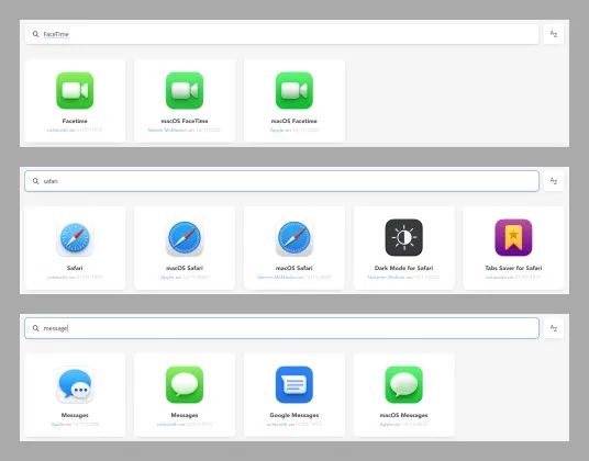 当然,如果你觉得 macOS Big Sur 原生应用的图标不好看,也可以在这个图标库上找到替换版本,例如信息、照片、Safari 浏览器等。