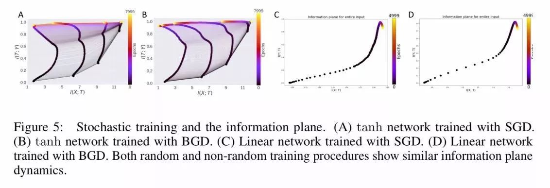 我们发现二者的信息动态大体一致,tanh 网络对于两种方法都有较鲁棒的压缩。因此训练过程中的随机性似乎对输入信息的压缩贡献不大。该发现与「压缩主要原因是双饱和非线性」的观点一致。