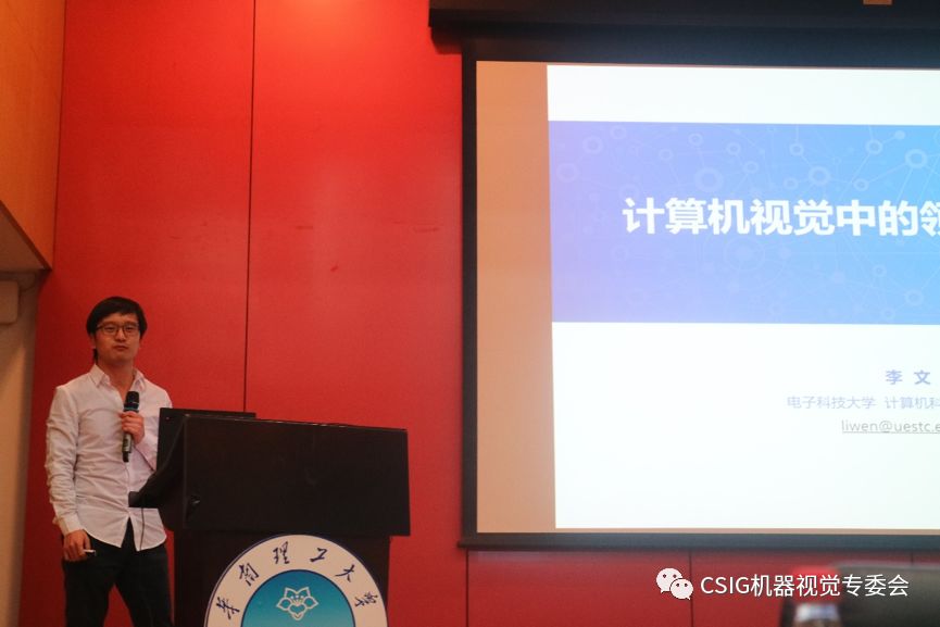 接下来,电子科技大学李文教授作了题为“计算机视觉中的领域适应问题”的学术报告。他首先介绍了计算机视觉中源域数据和目标域数据不匹配的问题,解释了对领域适应问题进行研究的重要意义。随后,李文教授分析了领域适应任务的难点和挑战,同时从传统方法和基于深度神经网络的两个方面简单回顾了近年来的主要研究方法。在报告的最后,李文教授分享了其团队在目标检测、图像分割和风格迁移等任务中的研究成果。李教授逐层深入地讲解了领域适应问题的基本理论与前沿方法,将复杂问题讲解得十分透彻,加深了学员们对此领域的理解。