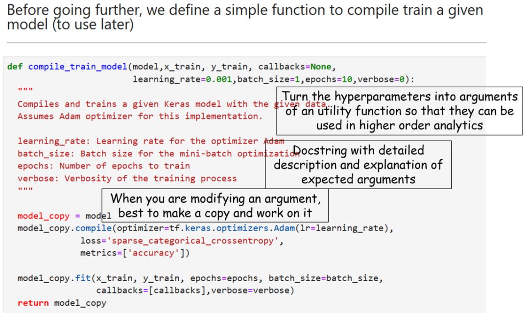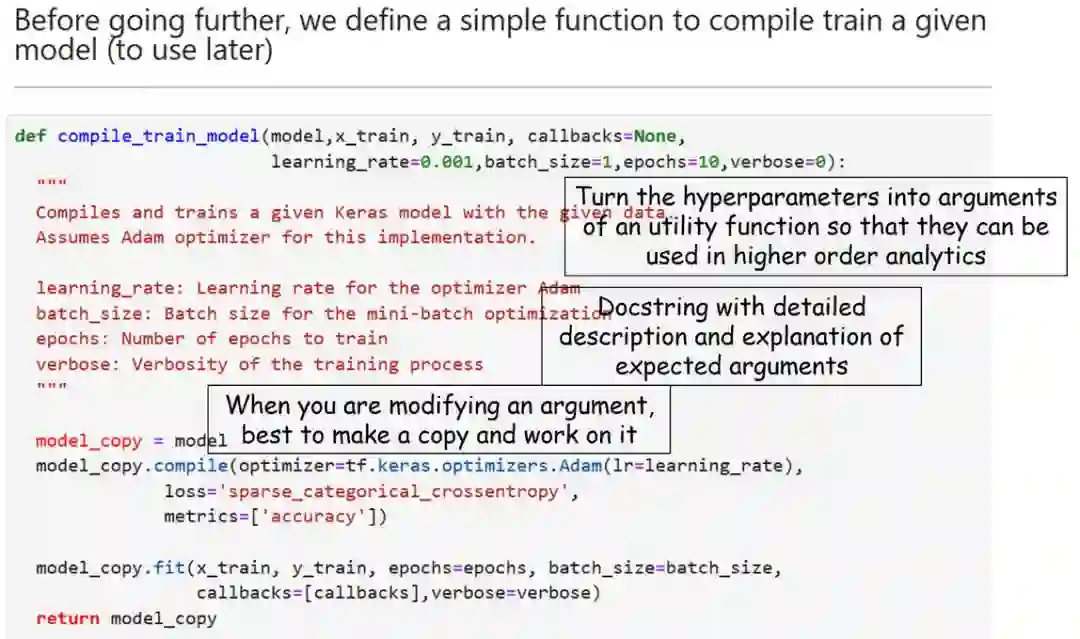 我们甚至可以将编译和训练代码封装在一个实用函数中,从而在更高阶的优化循环中方便地使用超参数。