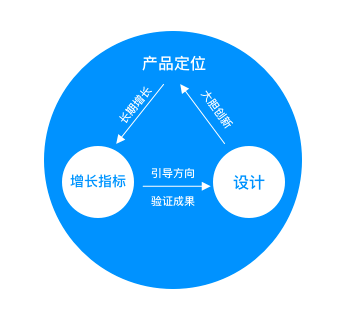 首先先阐述下产品定位、增长指标、设计方向三者的关系:产品定位代表长期的战略方向并包含增长指标和设计方向,增长指标是产品定位的客观数据形式可量化、可落地的延伸。
