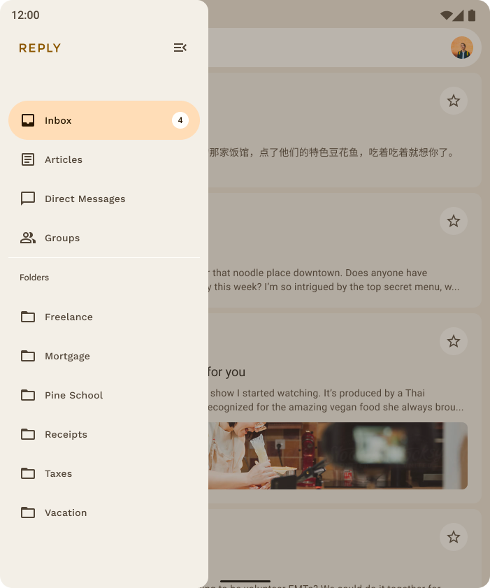 您可以查看 Reply Compose 示例,详细了解自适应应用和窗口大小类的实现: