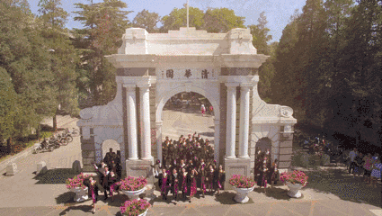 学位袍是一件帅气的长袍,左胸有我们清华大学的标志,前胸如意扣,袖口长城纹,非常有范儿!