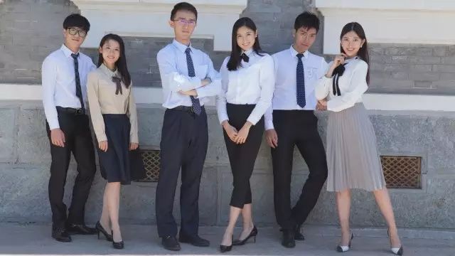女生的上装应选择浅色系的衬衫,扎领结或领带,下装穿深色长裤或长裙,深色皮鞋。