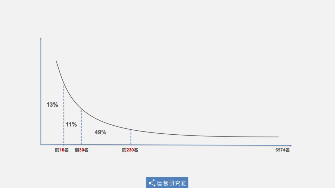 之前我们在做《运营地图2.0》爆款复盘时发现,其实 3% 的分销员贡献了超过 70% 的分销销售收入(存在明显的 2/8 现象)。而这 3% 的分销员是不需要大规模裂变获取的,甚至可以说用“喊喇叭”的形式集中即可。