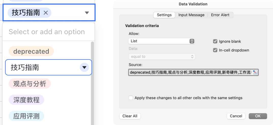而在工作量最大的环节——依次为每篇文章选择合适的分类中,多维表格的功能也提供了不少便利: