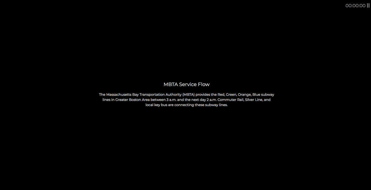 2017年夏天,我有幸以可视化助理的身份在MBTA(Massachusetts Bay Transportation Authority,马萨诸塞州湾运输管理局)实习。MBTA 位于波士顿,管理着美国麻省所有的地铁和公交。但其公共交通之发达在美国算是数一数二。截止到2017年,除了渡船和其它特殊服务线路外,共有8362个站点、8条地铁线和192条公交线路,每日平均至少4万搭乘人次。