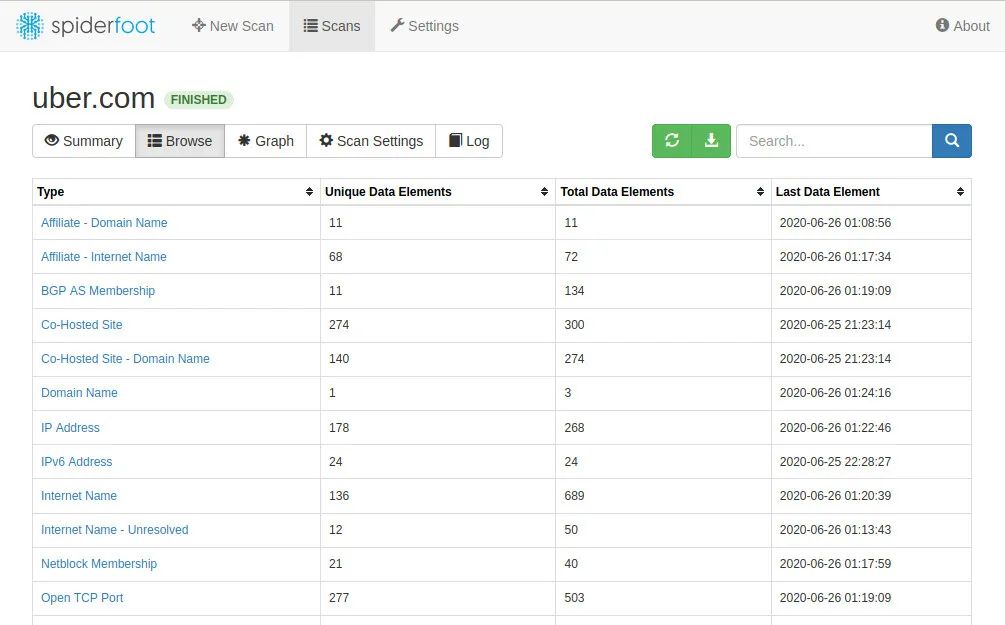 下面是 SpiderFoot 的最新版本,它是一款基于 Web 的 CLI 工具,由 Python 编写: