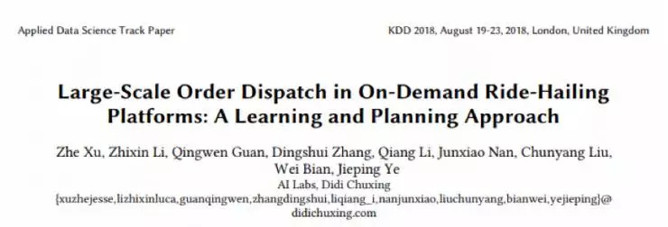 昨天,我们重点对滴滴 KDD 2018 Poster 论文《Learning to Estimate the Travel Time》进行了介绍,本文则是对滴滴 KDD 2018 Oral 论文《Large‑Scale Order Dispatch in On‑Demand Ride‑Hailing Platforms: A Learning and Planning Approach》的详细解读。