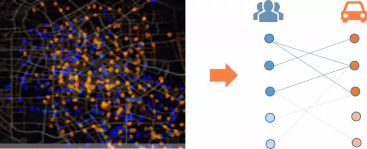 移动出行的本质是在乘客和司机之间建立连接。在滴滴,平台日订单达 3000 万,高峰期每分钟接收超过 6 万乘车需求,如何设计一个更高效的匹配算法来进行司机和乘客的撮合也成为非常核心的问题。