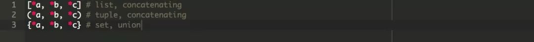 对 lists, tuples 和 sets(a, b, c 是可任意迭代的), 此方法同样有效:
