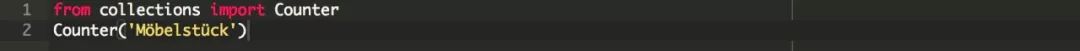 Python 3: Counter({"M": 1, "ö": 1, "b": 1, "e": 1, "l": 1, "s": 1, "t": 1, "ü": 1, "c": 1, "k": 1})
