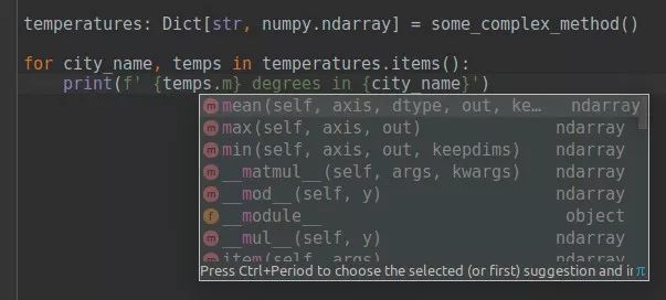 这是 PyCharm 中带有变量注释的建议示例。即使在使用的函数没有注释的情况下,依旧有效(取决于向后的兼容性).