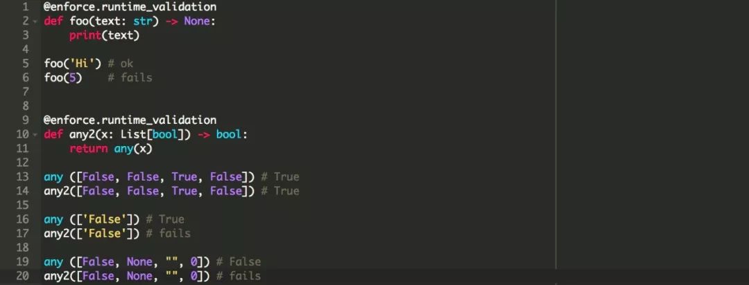 然而,你可以使用类似 enforce 这样的工具在代码运行期进行类型检查,这对你进行 debug 是很有帮助的(很多情况下,类型提示并不生效).