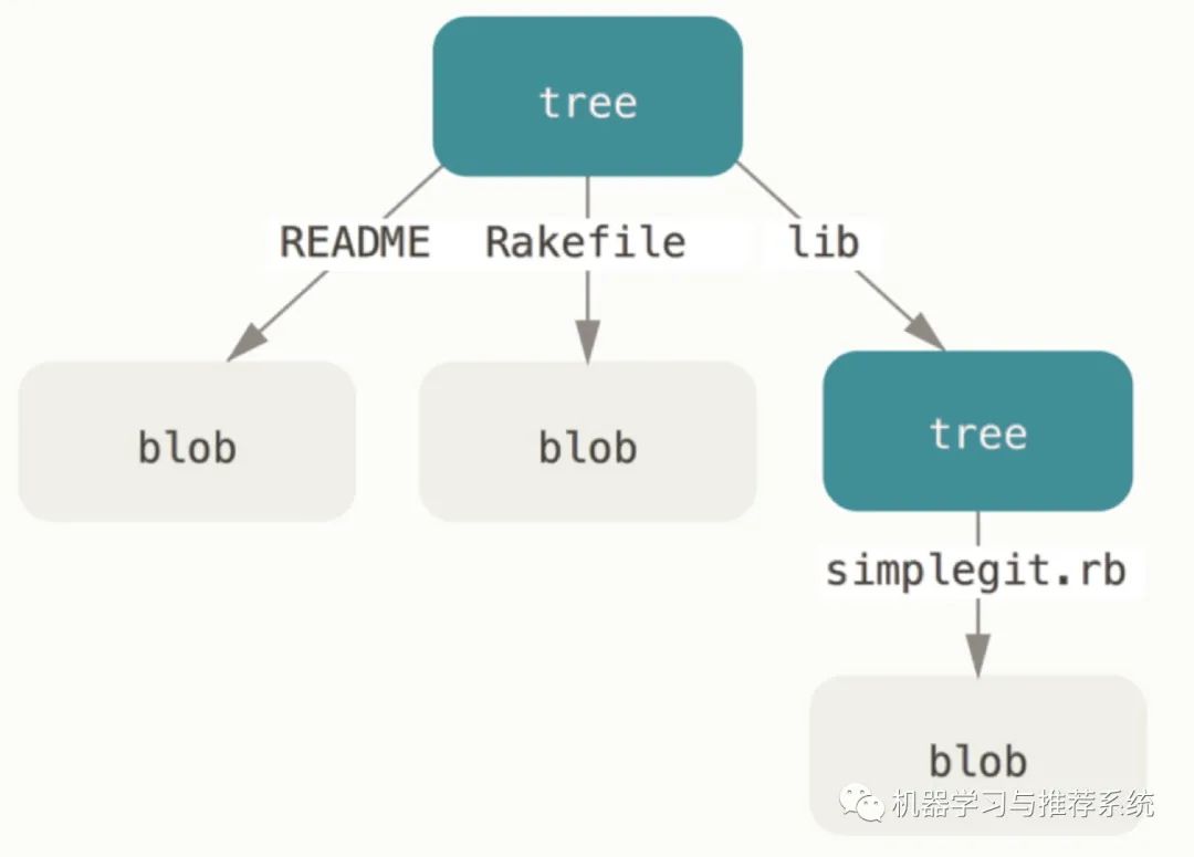 从上面的图可以看出来,tree 对象可以指向 blob 对象,也可以指向 tree 对象。
