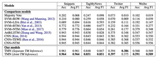 这个模型在多个短文本数据集(新闻、Twitter数据、微博数据)上进行了实验,与其他模型可以拉开较大差距。