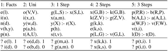 这里的逻辑推理任务是用prolog程序表达的。样例如下表所示: