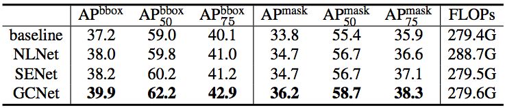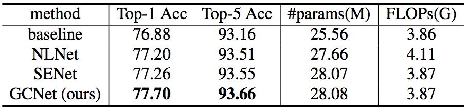此外,作者发现这个简化版的 NLNet 与流行的 Squeeze-Excitation Network(SENet)具有相似的结构。作者将他们抽象为一个通用的全局上下文建模框架,主要分为以下三个模块:(a)上下文建模模块,它将所有位置的特征聚合在一起形成一个全局上下文特征;(b)特征转换模块,用于捕获通道间的相互依赖性;(c)融合模块,将全局上下文特征与所有位置的特征进行融合。其中简化版的 NLNet 与 SENet 均是此全局上下文建模框架的实例。