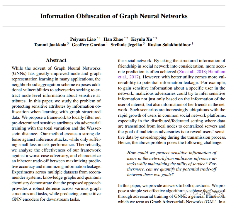 图神经网络作为一种强大的工具,被广泛用于分析图结构数据,并在节点分类、链接预测等图分析任务中取得了巨大的成果。然而,最近几年的研究表明:图神经网络很容易被一些微小的扰动影响,这类扰动被定义为对抗性扰动,经过对抗性扰动构建出来的图被称为对抗样本。研究表明,对抗样本在图学习领域广泛存在,并很大程度上影响着图神经网络的性能,从而限制了其进一步的应用。图神经网络的安全性问题也是该领域的研究热点之一,安全性问题主要包括:模型鲁棒性,模型防窃取,隐私保护等方面。今天介绍的是ICML'21六篇关于模型鲁棒性的文章。