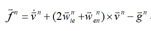 加速度计也是里面一种关键的器件,它的特点和人的感受其实略有不同,它只能测量表面力,所以它默认输出量里会包含重力加速度,这是一个比较麻烦的事情,所以大家通常会认为加速度计的直接输出量叫比力,而不叫加速度,因为它并不代表绝对的加速度,它的公式为